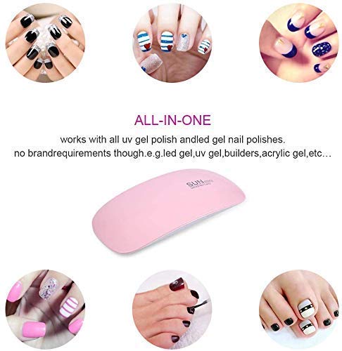 Mini size best for travel and business trip. UV/LED lamp cures fingernails or toenails in many ways. 6pcs durable LED light beads, no need to replace any light bulb. . Closer white light protects your hands and eyes, avoiding harm from outdated nail dryer. Specifications: Power: 6W Material: PC & ABS Color: White, Pink Wave Length: 365nm + 405nm Service Life: Approx. 50000 hours Timer Settings: 45s/60s Size: 131x67x19mm (L*W*H) Fit Gel Type: curing all kinds of UV and LED nail gel polishes. Operation Instruction*Connect DC adapter *Press ON/OFF Button, default timing setting 45s *Press ON/OFF Button, timing setting 60s Packing List1x Nail Lamp 1x User Manual 1x USB Line Tips: The power adapter does not included in accessory list. Cautions Please read the instruction carefully before using the Lamp Please power supply with correct voltage Not allow any liquid into the machine otherwise, damage may occur Please unplug the adapter, when leaving please not to turn on the machine excess than 300 minutes, otherwise it may reduce the lifetime of nail lamp
