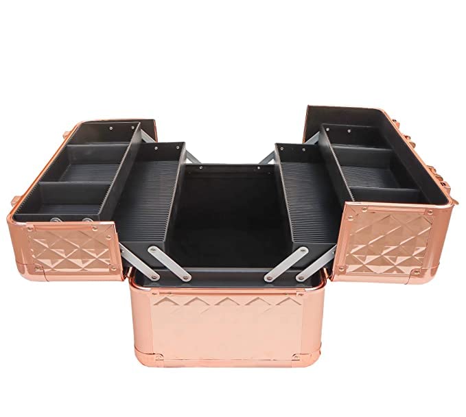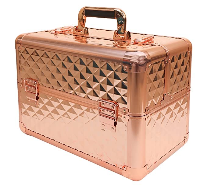 Professional Beauty Makeup Cosmetic Vanity Case/Box (Diamond Cut Rose Gold)