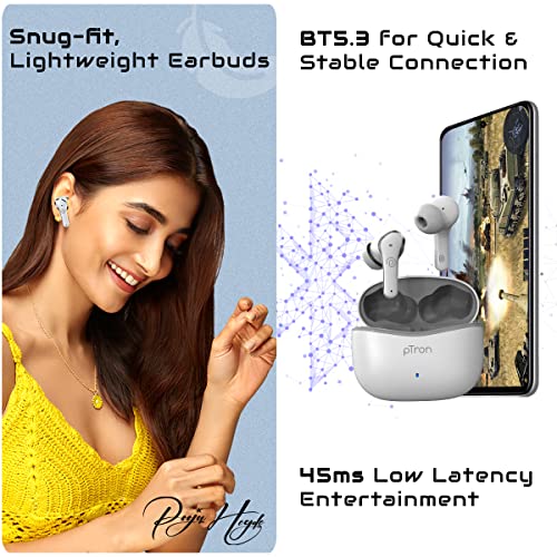 Bluetooth V5.3 with 1-Step Pairing & 10m Strong Wireless Connectivity | Snug-fit Lightweight TWS with Touch Sensors, Integrated Music/Call/Voice Assist/Modes Control | IPX5 Sweat & Water Resistance