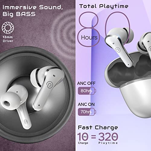 pTron Newly Launched Zenbuds Pro1 Max ANC Earbuds, 30dB Active Noise Cancellation, 80Hrs Playtime, Quad Mic ENC Calls, Deep Bass Drivers, BT5.3 In-Ear Wireless Headphone & Type-C Fast Charging (White)