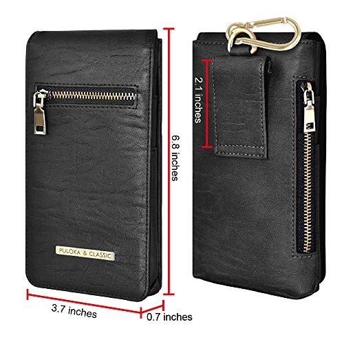 PULOKA Universal PU Leather Mobile Pouch with Belt Loop and Clip | Multipurpose PU Leather Pouch for All Smartphones Upto 6.5 inches- Black