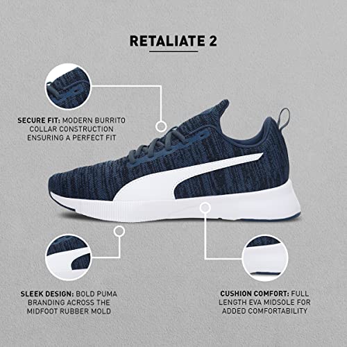 PRODUCT STORY: The Retaliate 2 adds a fresh look to our Contemporary Essentials line. The upper features a modern burrito construction in the collar, ensuring a perfect fit and enhancing ease of entry. Bold PUMA branding comes across the midfoot rubber mold. The heel has a unique pull tab and CAT branding. Full length EVA midsole features stylish paint lines and Softfoam sockliner ensures optimal comfort. Zoned rubber on the outsole provides traction. DETAILS The upper features a modern burrito construction in the collar, ensuring a perfect fit and enhancing ease of entry. DETAILS The Flyer Runner is all about STYLE X COMFORTThe fashionable upper design gives a stylistic approach to a light-weight, everyday cushioning runnerLae closure for snug fitRunning Type : NeutralIdeal for Road & Treadmil Running