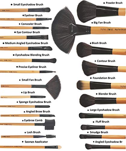 Puna Store 24 Piece Makeup Brush Set with Storage Pouch – Bamboo, Multicolor