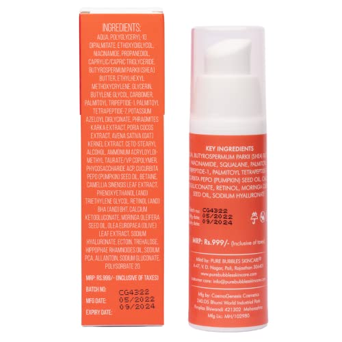 Pure Bubbles Skincare Face Cream with Retinol for Men & Women | Reduce Acne, Vitamin B3, Brightening, Sun Protection | Skincare for Beginners and Advanced Users, External Use Only, 28 Ml, Pack of 1
