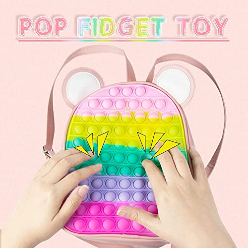 QBLYN Pop Fidget Backpack for Girls Pop Purse Shoulder Bag Pop Toy Party Favors Fidget Bag Gift for Kids School Birthday Party