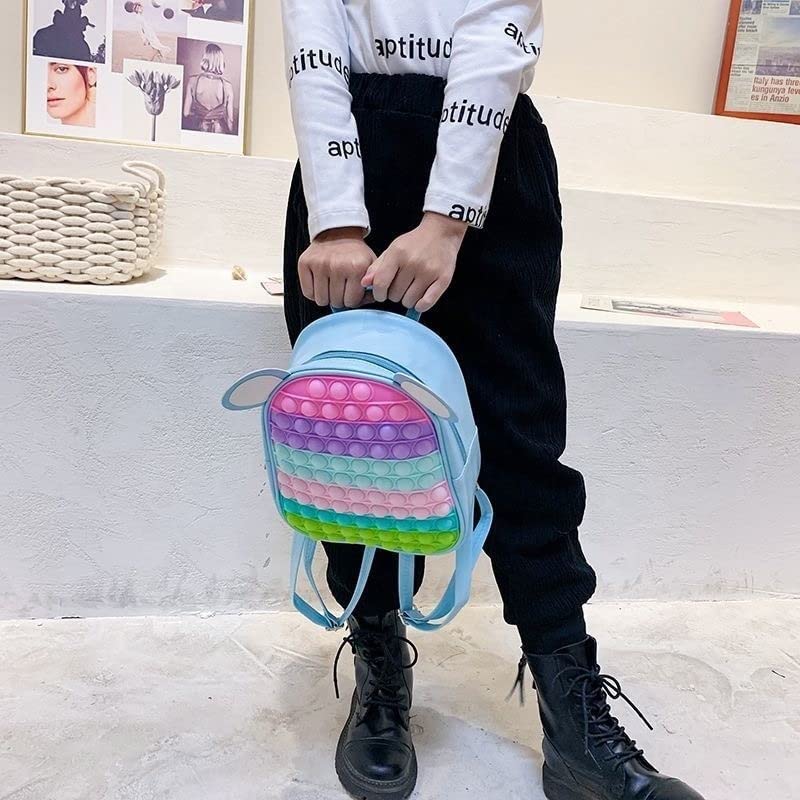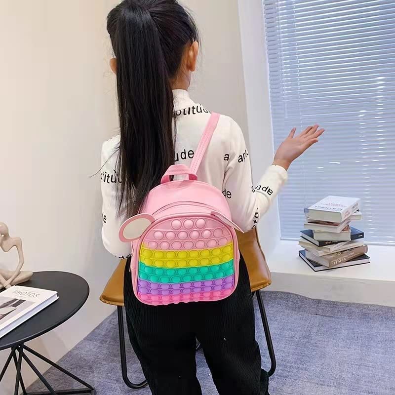 Our pop it kids backpack is a popular backpack designed for children with rainbow colors. It is the perfect gift for your children, sisters and friends at birthday parties, Halloween, Thanksgiving and Christmas.