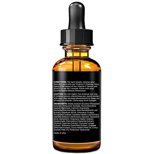 Radiant And Youthful Skin – Guaranteed To Leave Your Skin Radiant And More Youthful Looking, By Neutralizing Free Radicals. Simulates Collagen To Reduce Fine Lines And Wrinkles. 20% Active Vitamin C – Formulated With Vegan Hyaluronic Acid. Use With Moisturizer For Best Results – Use This Powerful Vitamin C Serum With A High Quality Moisturizer Like Radha Beauty Retinol Moisturizer. Cruelty Free & Organic – Does Not Contain Alcohol, Parabens Or Sulfates. Safe For All Skin Types