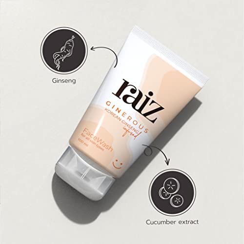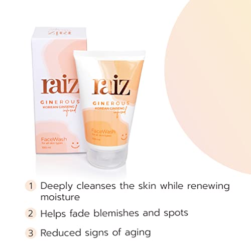Raiz Face Wash For Women & Men | Korean Ginseng Skin Face Wash | Skin Whitening, Anti Acne, De Tan Face Wash | Dry & Oily Skin Facewash | Paraben & Alcohol Free (Pack of 1)