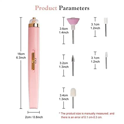 RAMPASS 5 IN 1 Polisher Finishing Touch Flawless Salon Nails Manicure Nail USB Automatic 5 Drill Bits Salon Gel Polish Clean Smooth Care Handle Tool flowers salon Nail Polisher Electronic, Painless,
