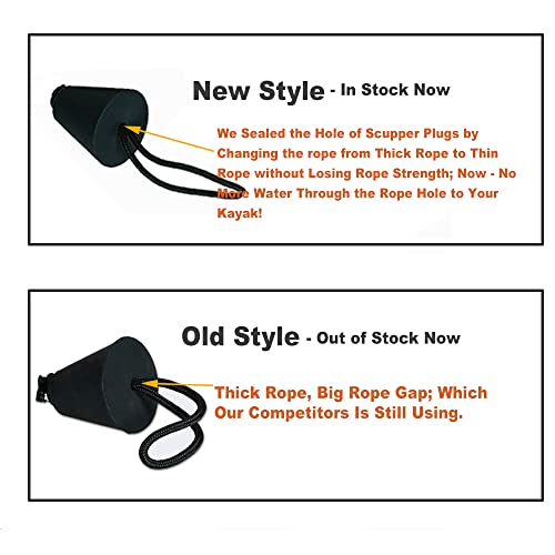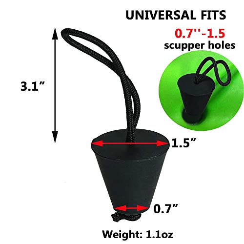 RANDDER Universal Kayak Scupper Plug Kit Silicone Scupper Plugs Canoe Drain Holes Stopper Bung with Lanyard, Fits 3/4” to 1.5” Holes – 4/PK