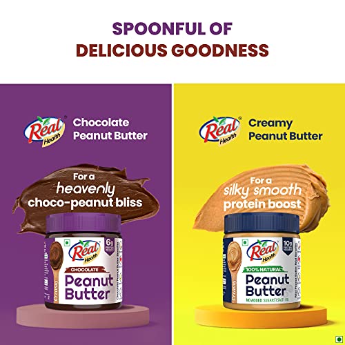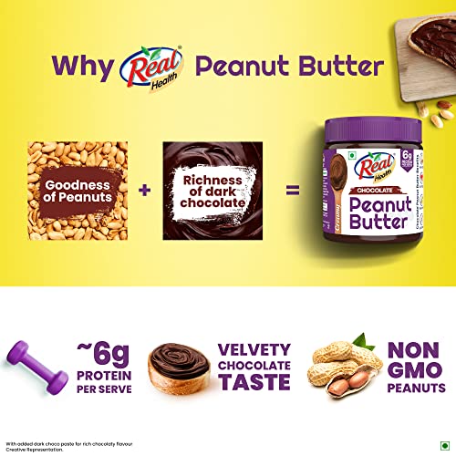 Real Health Dark Chocolate Peanut Butter -Creamy| High Protein with 6g Protein per serve| For Fitness conscious | Zero Trans Fat | Gluten Free – 350g