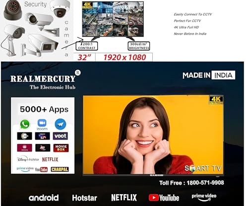 REALMERCURY 32 inch 4K Ultra Full HD Android 11 Television First Time In INDIA Include Bluetooth And Voice Remote 32 inchs tv 80 cm Android Smart TV an ISO29001 2020 Certified 1800-571-9908(Toll Free)