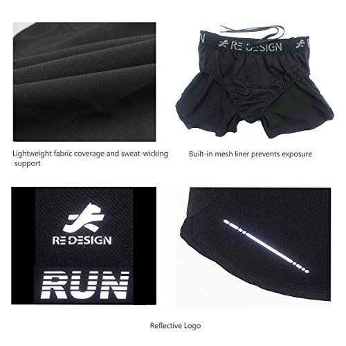 ReDesign Apparels Mens 3″ Ultra Running Marathon Split Shorts with Inner Mesh Liner