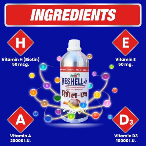 REFIT ANIMAL CARE Veterinary Vitamin H for Cow, Buffalo, Birds, Pig, Goat, Chicks, Chicken, Cattle, Poultry & Livestock Animals Multivitamin E A & D3 Liquid Feed Supplement (1000ml/ 1 Litre) Reshell-H