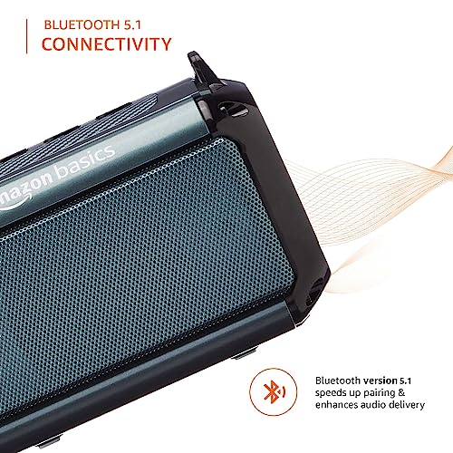 (Refurbished) AmazonBasics Bluetooth 9W Speaker, with TWS Function, Powerful Bass, BT 5.1, MicroSD Card Slot, RGB Lights, AUX Input, USB Support, and in-Built Noise Cancelling Mic (Grey)