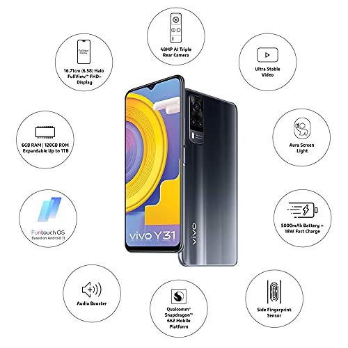 (Refurbished) Vivo Y31 (Racing Black, 6GB, 128GB Storage) with No Cost EMI/Additional Exchange Offers