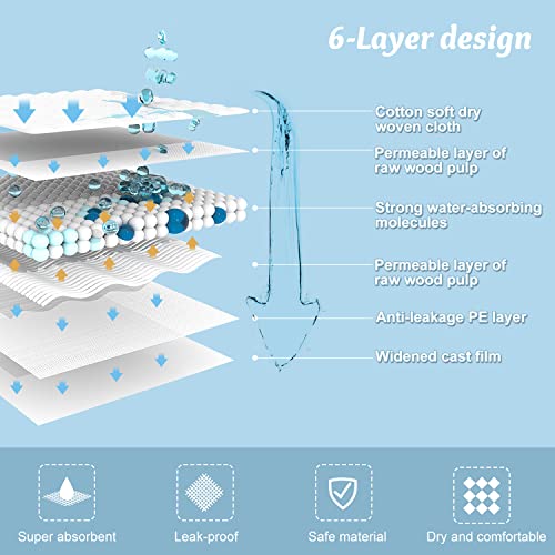 SUPER ABSORPTION PERFORMANCE-Pet Training Pads 6-layer design optimizes the pads to be super absorbent and leak-proof.