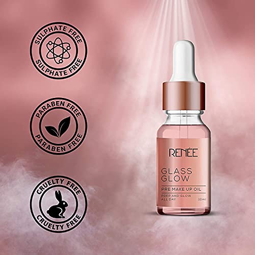 RENEE Glass Glow Pre Makeup Oil Primer 10ml| Non Sticky, Smoooth Finish| Hydrates, Repairs & Nourishes skin| Adds Natural Glow to The Skin