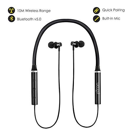 (Renewed) pTron Tangent Beats Magnetic in-Ear Wireless Bluetooth Headphones with Mic – (Black)
