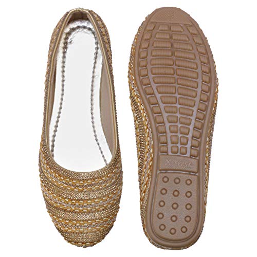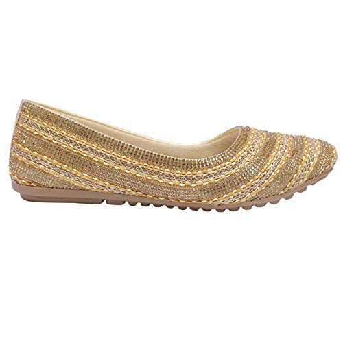 RG Collections is presenting Trendy and comfortable Flat Traditional belly shoes for Women’s and Girls, this pair of embroidered lace sandals which is made up of PVC material having beautiful golden embroidered design makes it different. Fashionable and sturdy to be worn all day long. Give a beautiful complement to your casual/ethnic look in the form of these charming sandals/flats, having the poly rexine material which make them comfortable to wear.