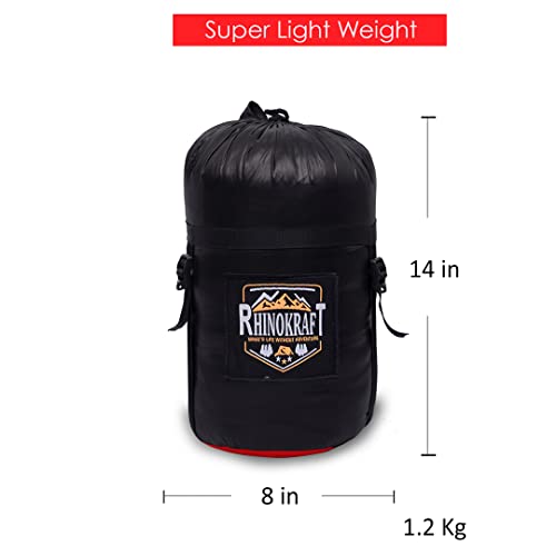 RhinoKraft 3 Season Warm & Cool Weather for Camping and Travelling Lightweight Sleeping Bag for Adults & Kids – Weight 1.3 Kg | Premium Nylon Fabric | Free Stuff Sack | Stylish Mummy Shape