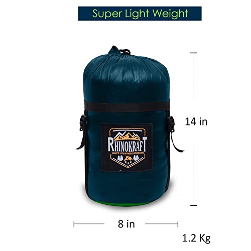 RhinoKraft 3 Season Warm & Cool Weather for Camping and Travelling Lightweight Sleeping Bag for Adults & Kids – Weight 1.3 Kg | Premium Nylon Fabric | Free Stuff Sack | Stylish Mummy Shape