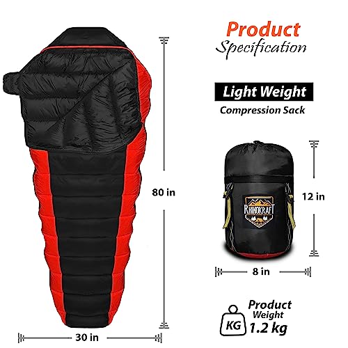 RhinoKraft Camping Sleeping Bag – 3 Season Warm & Cool Weather – Summer, Spring, Winter, Lightweight, for Adults & Kids – Camping Gear Equipment, Traveling and Outdoors