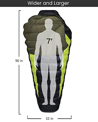 Comfortably fits: This blaze sleeping bag with a width of 32 is large enough for a healthy person providing a roomy experience. Long enough to easily accommodate 6 feet tall hiker.