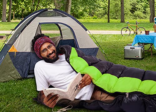 RhinoKraft Rider Black Green Mummy Shape ! Extra Large Size Sleeping Bag ! Minus Temp Usage for Camping and Trekking ! 2.5 Kg ! Free Compression Sack !