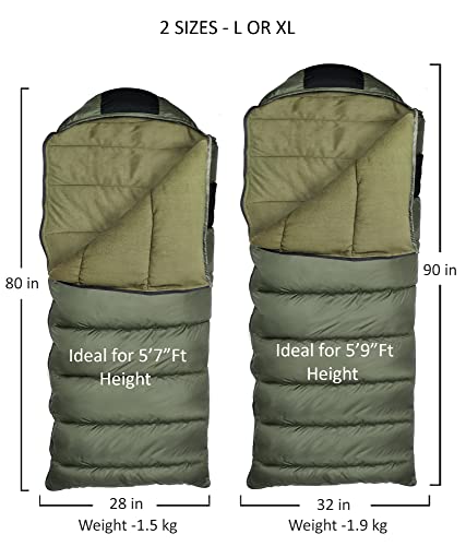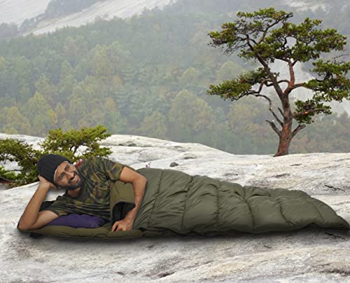 RhinoKraft Ultra-Light Zero Degree Envelope Sleeping Bag for Adults for Mild to Harsh Winter, Portable with Compression Sack for Camping, Trekking, Hiking and Outdoor Activities + Air Travel Pillow