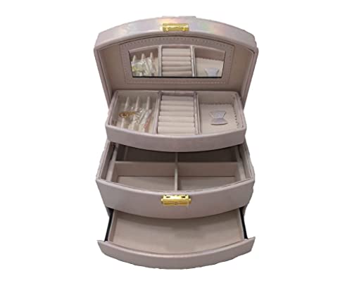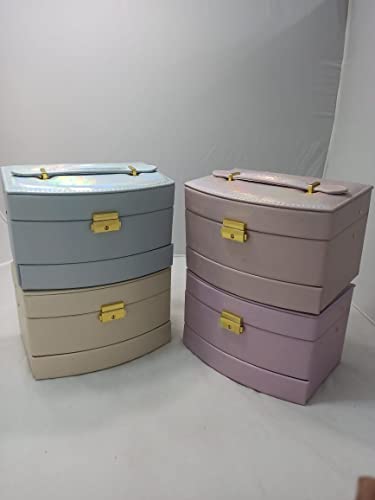 Multifunctional Box : This jewellery box is a Medium but large capacity case, the top lid section has 8 Ring Rolls and 2 small compartments for small jewelry stuff. Second layer has 6 adjustable compartments for bracelet, necklace, ring, makeup item, and Third layer has single tray for makeup brush, lipstick storage holder.