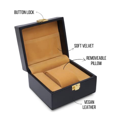 Rich India Vegan Leather Wristwatch Box Organizer/One Slot Travel Watch Case for Men & Women (Desert-Black)