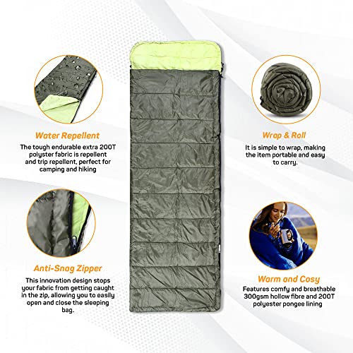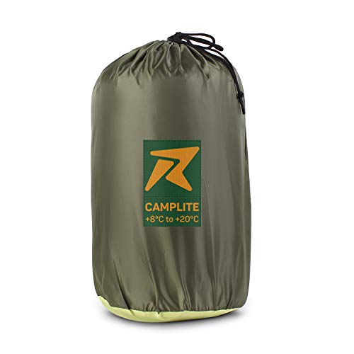 Rocksport Camplite +8°C to +20°C Rectangular Shape Sleeping Bag for Camping, Hiking, Indoor & Outdoor, Warm Sleep Bag (Yellow – Army Green) – Free Air Pillow