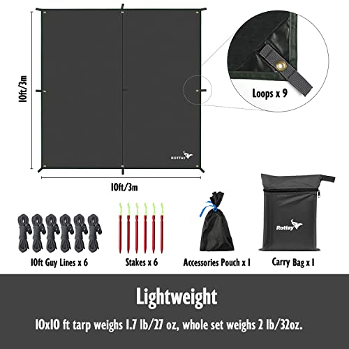 ★Multifunctional Tarp: Rottay Camping Tarp can be used as versatile, durable, multi-functional shelter perfectly suitable for camping, hiking, climbing, fishing, backpacking, sporting events, festivals, picnics, gardens, beach activities, family gatherings, backyard parties. also can be used as tent footprint, picnic mat, beach mat.