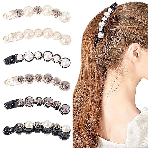 Rubela 2 PCS Pearl Hair Clip Banana Clips Ponytail Holder Banana Hair Clips Accessories Banana Clip