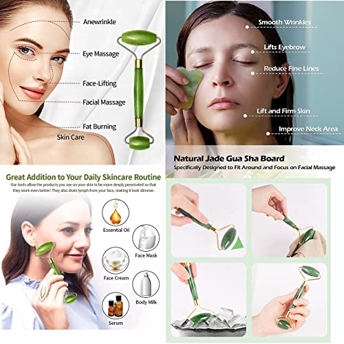1 Pic. T-Shape Face Massage With (2-Pic. AA battery), + 1 Pic. 100% Natural Jade Stone Facial Roller With 1 Pic. (Gua Sha Tools) + 1 Pic. 3D Massage RollerFacial Beauty Massage Bar: Lift your face, tighten, and revitalize your facial skin. Used with uplifting, super hydrating, anti-oxidant & anti-wrinkle products for better results.Micro Vibration Massage: Vibration Massage therapy is an extremely hit beauty technology. Activate skin to keep moist and elastic through vibration.
