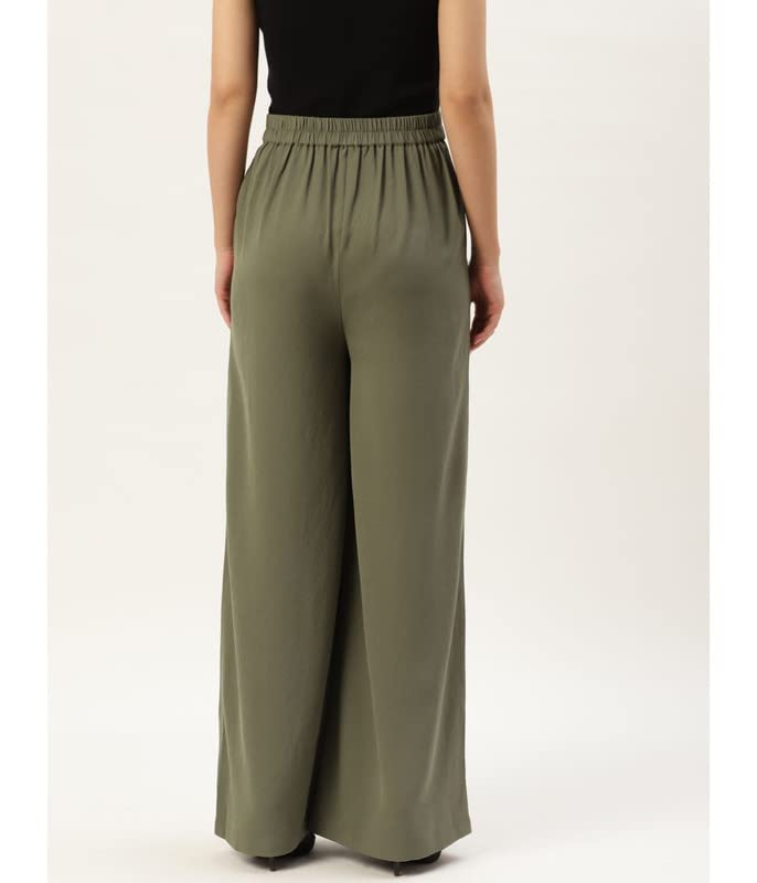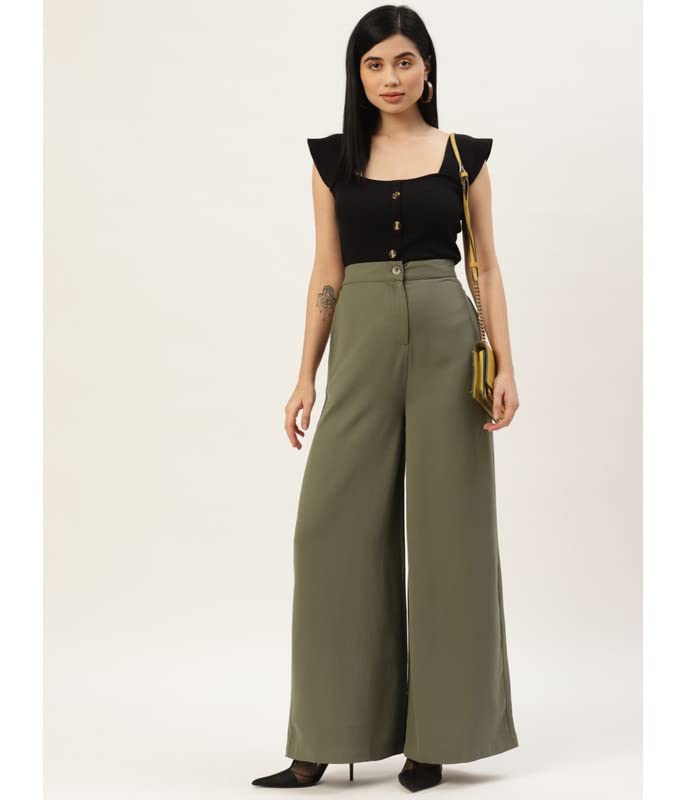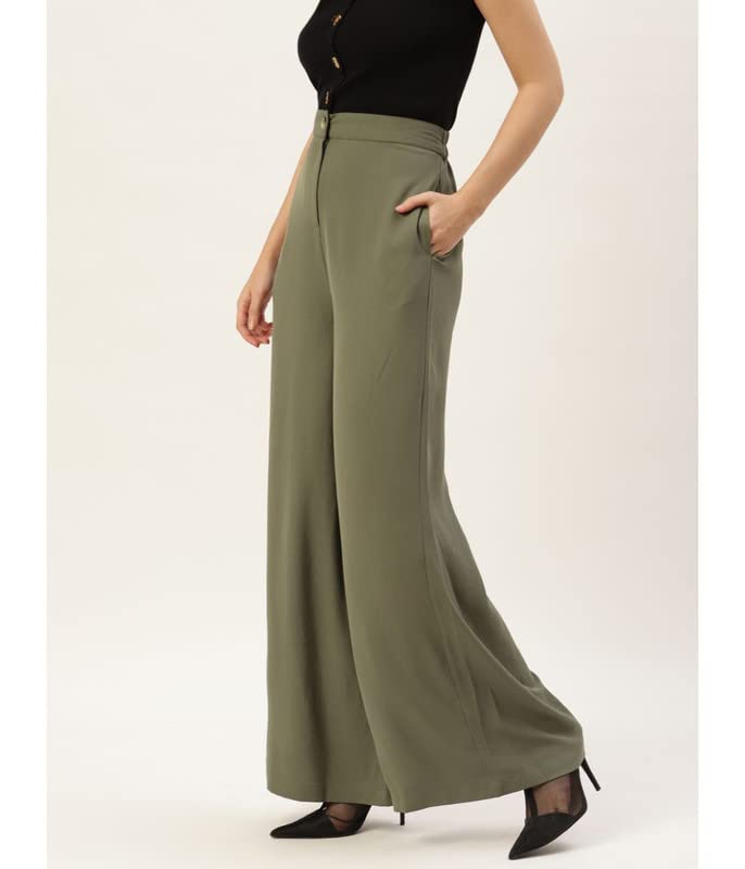 Wear This Women Olive Green Parallel Trouser From Rue Collection.