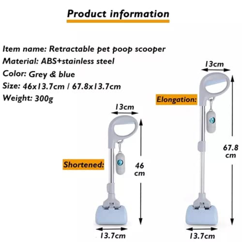 RvPaws pet Adjustable Size Poop Scooper | Waste Collector Long Portable & extendable 46-68cm Handle | Potty Picker with Bag for Dogs, Cats, Pets