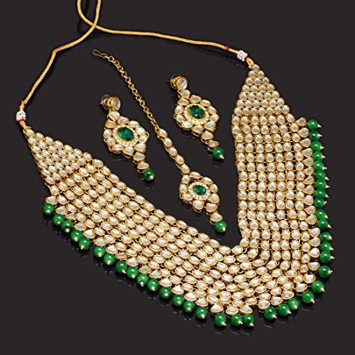 SADHANA COLLECTION White Pearl Traditional Jewellery Kundan Necklace Set with Maang Tika and Earrings for Women