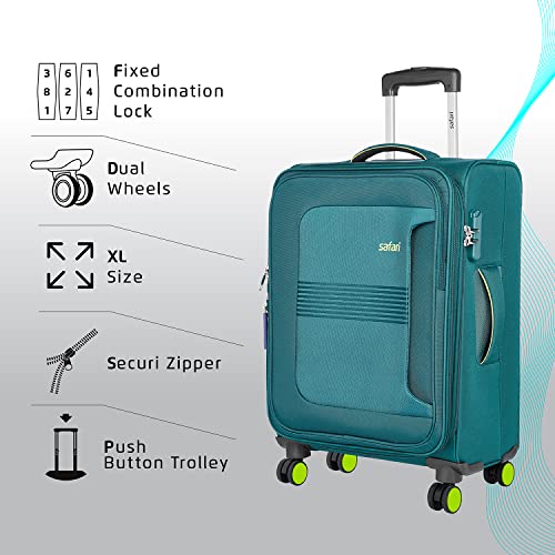 Safari Antitheft 71 cms Medium Check-in Polyester Soft Sided 8 Wheel 360 Degree Rotation Luggage/Suitcase/Trolley Bag (Teal)