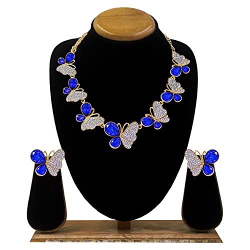 SAIYONI Ethnic Collection Butterfly Design Gold Plated Choker Necklace With Earring Jewellery Set