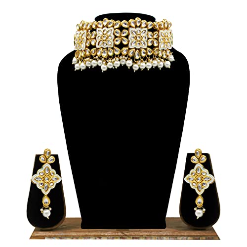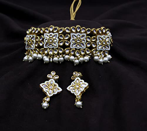 SAIYONI Wedding Collection Gold Plated Meenakri Kundan Stone Work Choker Necklac With Earring Jewellery Set