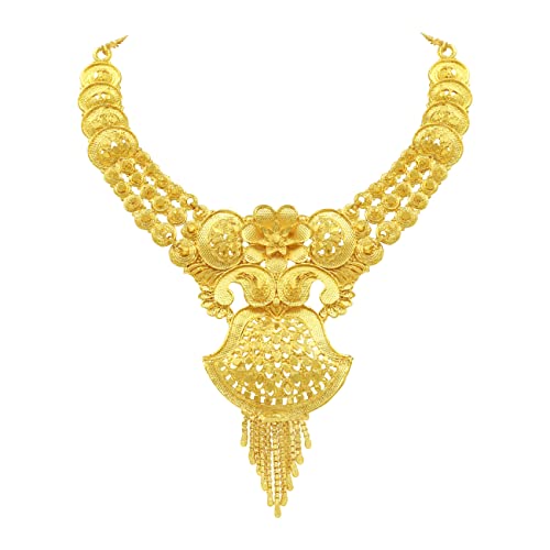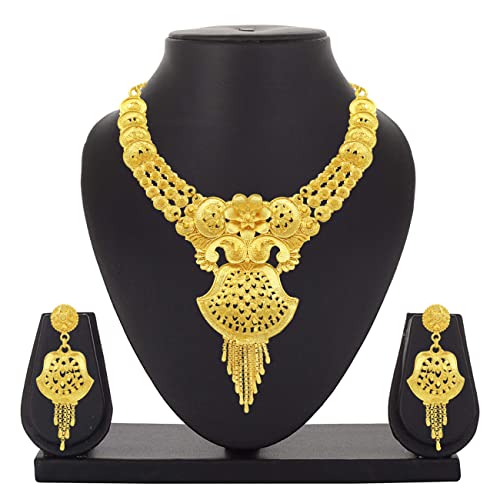 SAIYONI Wedding Collection One Gram Gold Plated Floral Design Forming Choker Necklace With Earring Jewellery Set (Gold)