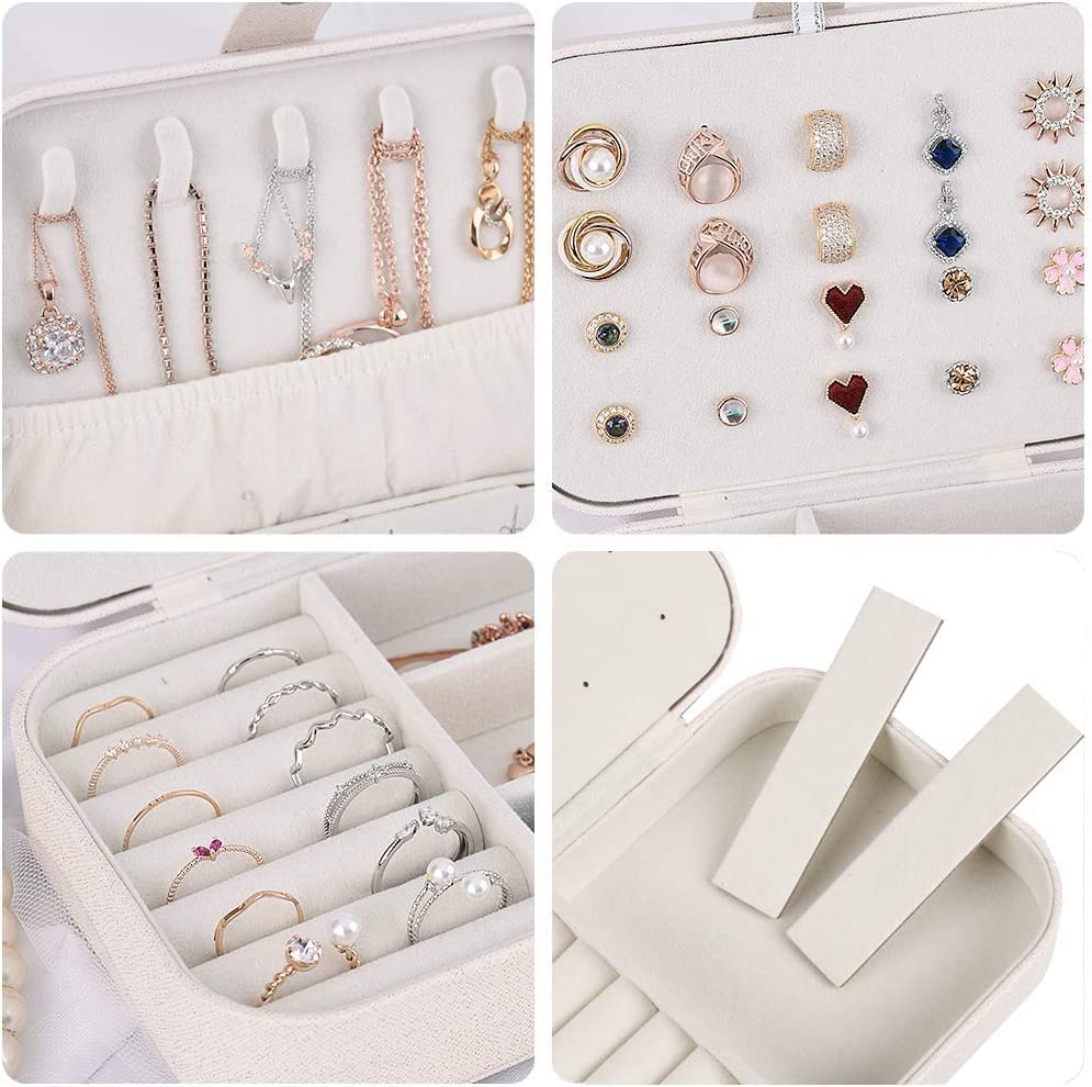 Travel Jewelry Box Portable and Lightweight, easy to carry, this small jewelry box case is easy to put inside your handbag but not taking too much space. jewelry organizer is convenient for journey, traveling, weekend trip or business trip.