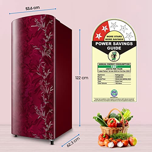 Samsung 183 L 2 Star Digital Inverter Direct Cool Single Door Refrigerator (RR20C20C26R/NL, Mystic Overlay Red 2023 Model)