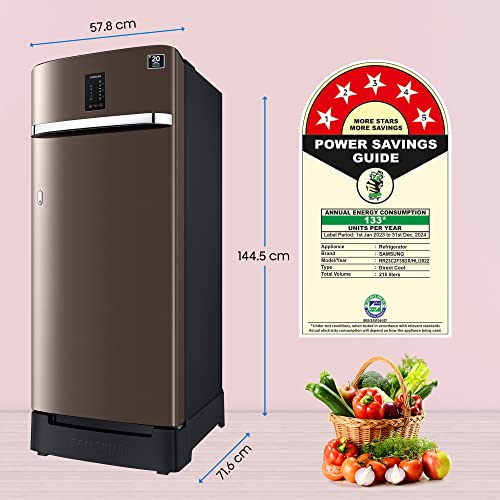Samsung 215 L 5 Star Digi-Touch Cool, Digital Inverter Direct Cool Single Door Refrigerator (RR23C2F35DX/HL, Luxe Brown, Base Stand with Drawer 2023 Model)