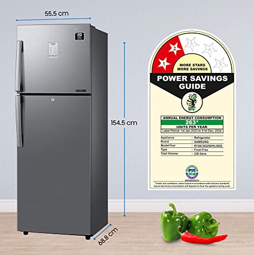 Samsung 236 L 2 Star Convertible, Digital Inverter with Display Frost Free Double Door Refrigerator (RT28C3922S9/HL, Silver, Refined Inox, 2023)