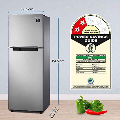 Samsung 236 L 2 Star Digital Inverter Frost Free Double Door Refrigerator (RT28C3032GS/HL, Gray Silver 2023 Model)