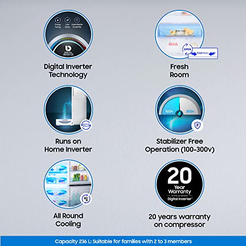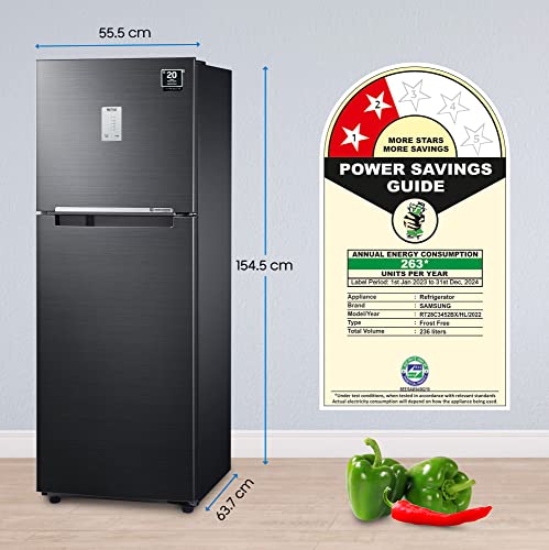 Samsung 236 L 2 Star Digital Inverter Frost Free Double Door Refrigerator (RT28C3452BX/HL, Luxe Black)