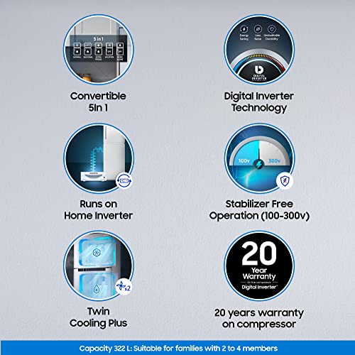 Samsung 322 L 2 Star Convertible 5In1, Digital Inverter Frost Free Double Door Refrigerator (RT37C4512BX/HL, Luxe Black 2023 Model)